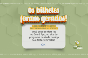 A Secretaria da Fazenda do Ceará (Sefaz-CE) informa que já estão disponíveis os bilhetes que concorrerão ao 29° sorteio do Sua Nota Tem Valor. Os