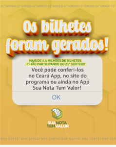 Os cidadãos cadastrados no Sua Nota Tem Valor já podem conferir os bilhetes que concorrerão ao 23° sorteio por meio do aplicativo Ceará App ou