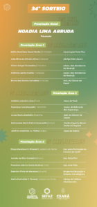 A Secretaria da Fazenda do Ceará (Sefaz-CE) anunciou, nesta quinta-feira (18), no site e redes sociais do órgão, os nomes dos ganhadores do 34º sorteio do programa Sua Nota Tem Valor (SNTV). Noadia Lima Arruda, de Pacatuba, foi a ganhadora do sorteio geral com premiação de R$ 25 mil. Além dela, outros 15 participantes e 14 instituições sem fins lucrativos foram sorteados com os prêmios de R$ 5 mil cada. O nome dos demais ganhadores já pode ser conferido no site, redes sociais e aplicativo do Sua Nota Tem Valor.